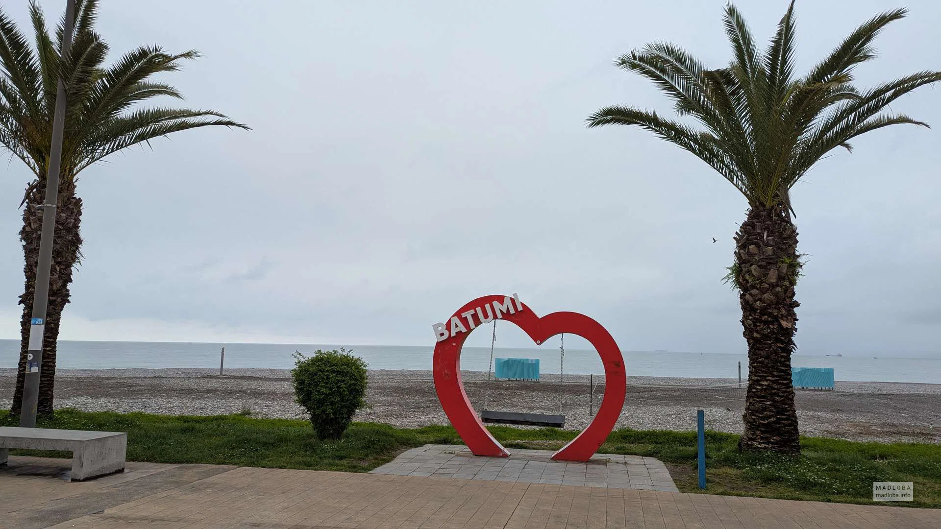 Alex TemnosagatyИнсталляция «Люблю Батуми» на набережной отличное место для любителей фото с видом на море! Вроде выглядит просто, но очень мило. Я, конечно, не удержался и начал фотографироваться. Фотки получились классные — огромное сердце и море. Народ вокруг тоже фоткается, особенно парочки.