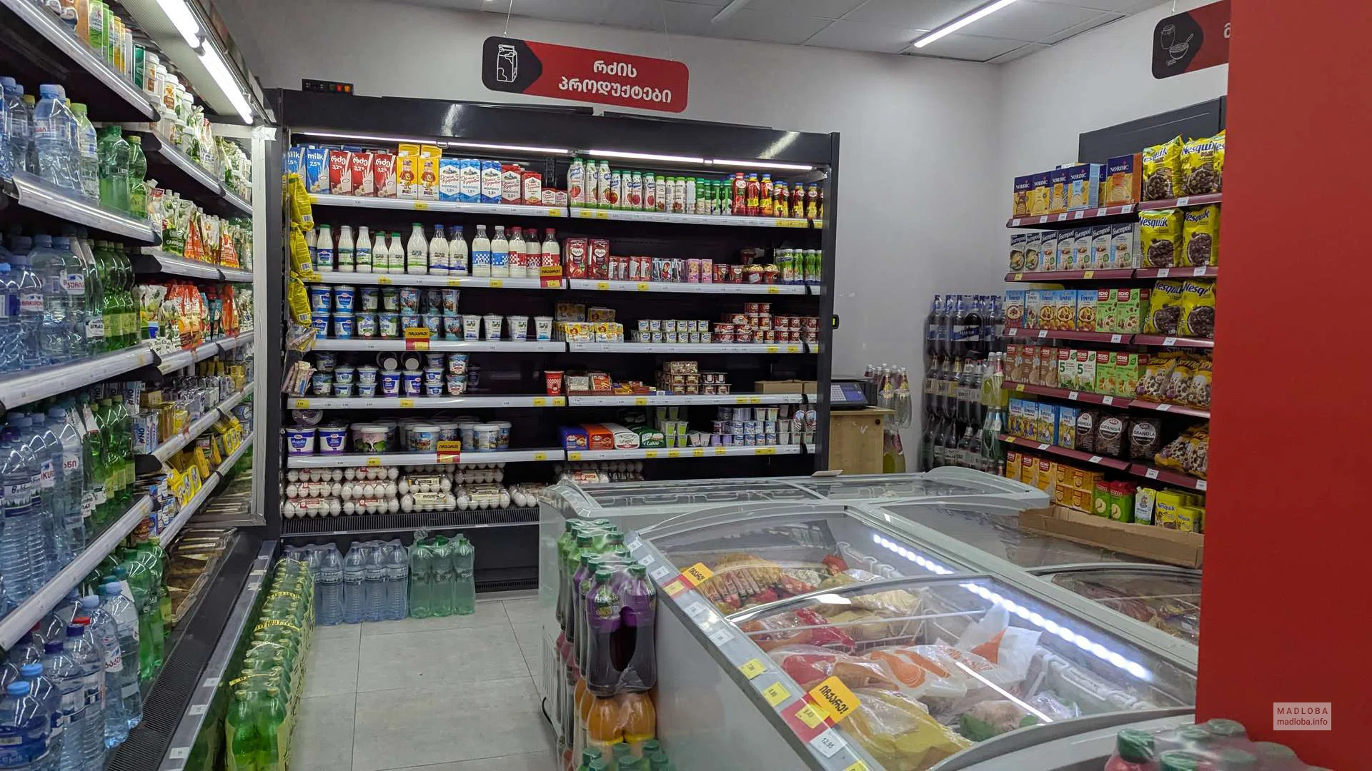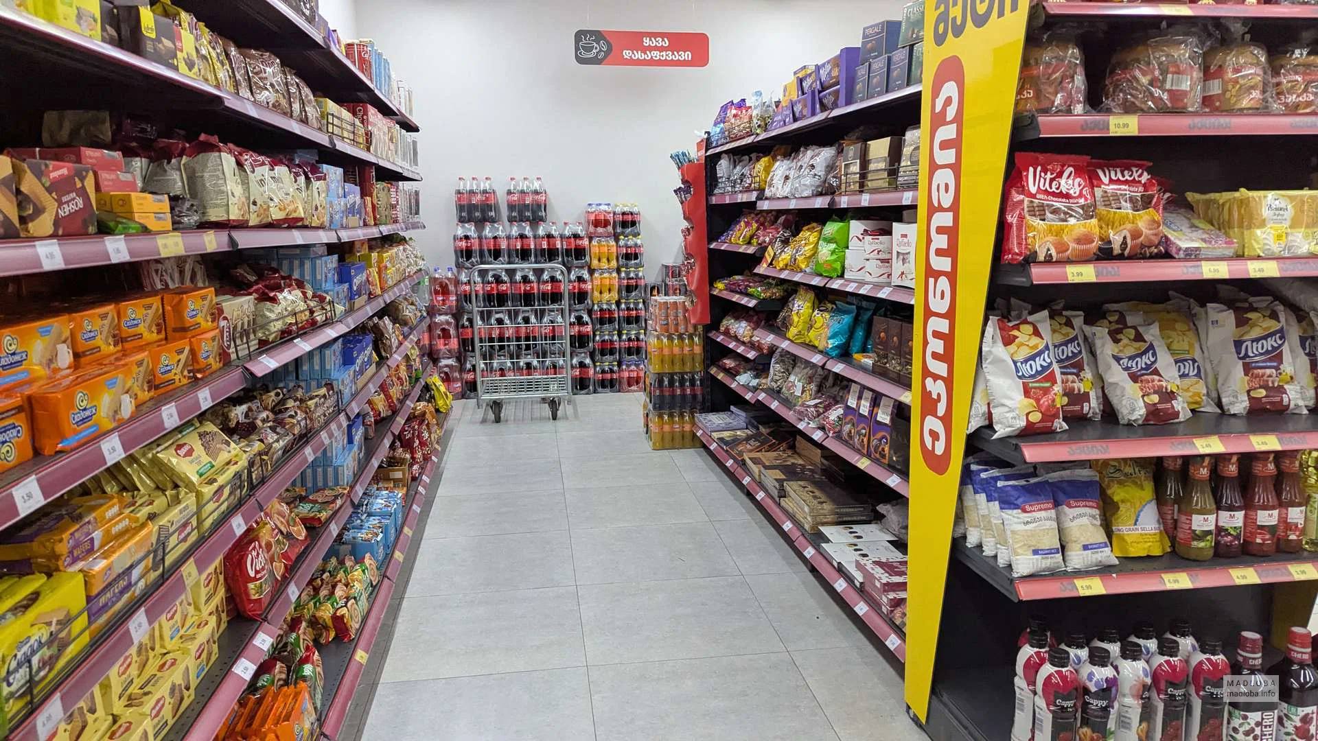 შესასვლელში არის ვიტრინები ძირითადი კატეგორიის საქონლის გამოსახულებებით, შიგნით არის ფართო თაროები, მაცივრები და სწრაფი გამრიცხველიანება. ღიაა ყოველდღე, ემსახურება ადგილობრივ მოსახლეობას და ქალაქის სტუმრებს.