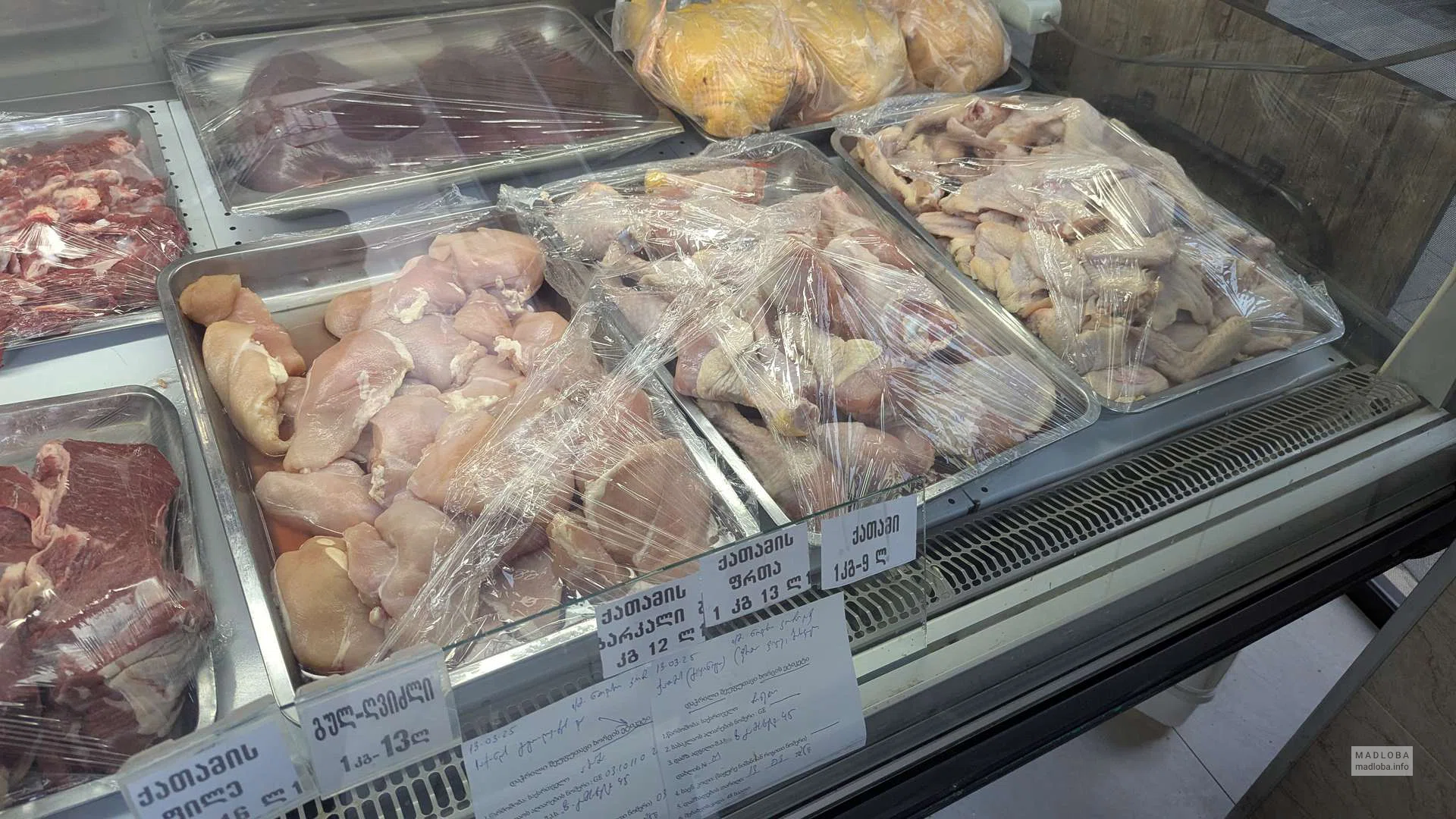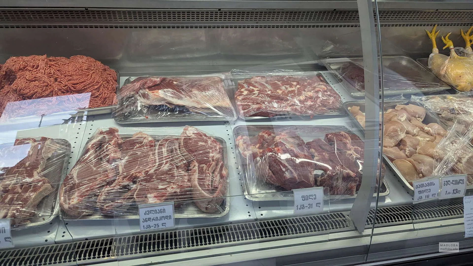 ძროხის, ცხვრის, ქათმის და სხვა მაღალი ხარისხის ხორცპროდუქტები იყიდება.