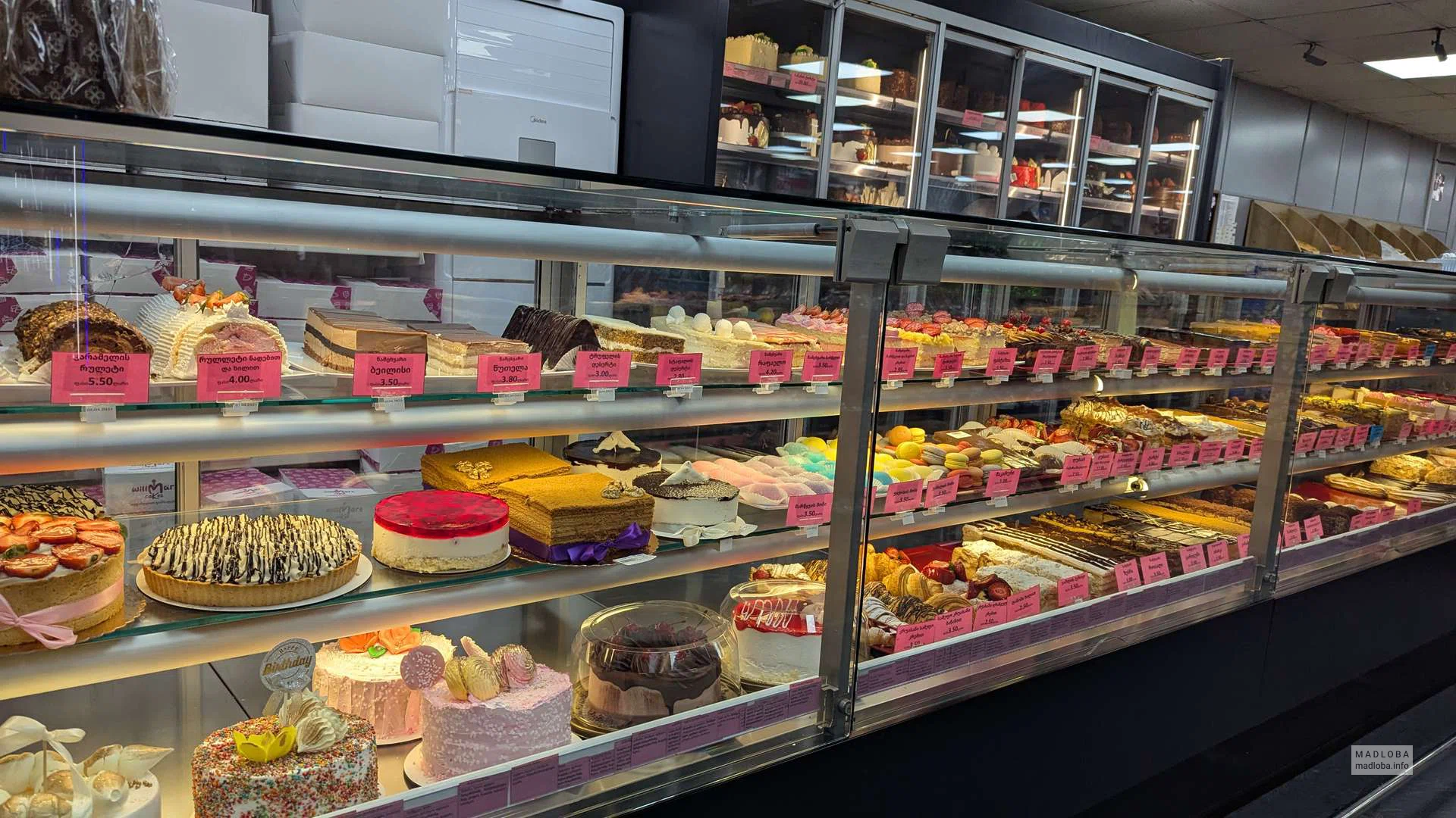 Ночью так хотелось чего-то сладкого. Зашла специально ради этого. Впечатлил большой ассортимент тортов, пирожных и готовых блюд.