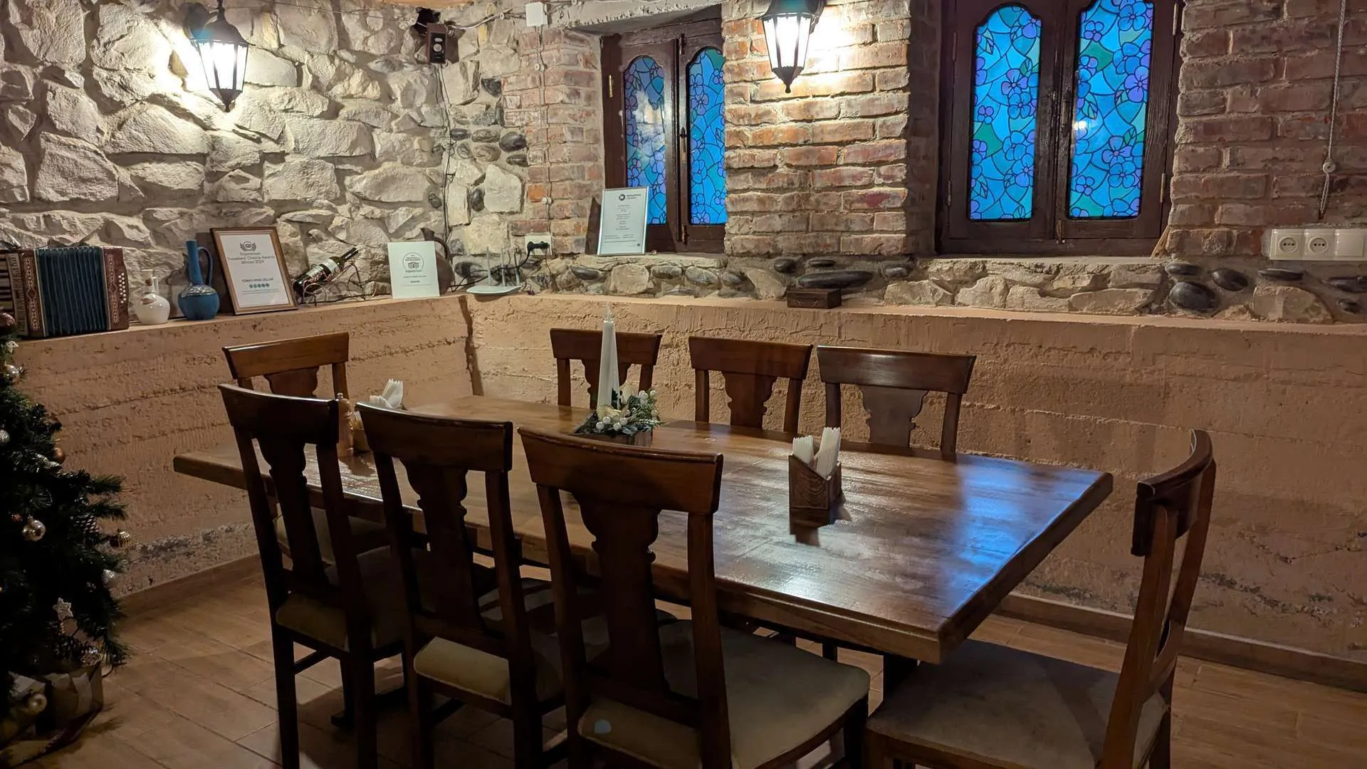 რესტორანი მყუდრო საოჯახო ატმოსფეროს ქმნის, მაგრამ ზოგიერთი დეტალი არასაბუნებრივად გამოიყურება: