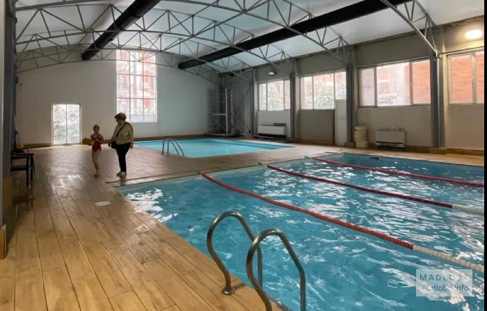 Стоимость разового посещения плавательного сеанса не ограничена по времени — 20 лари. Возможна оплата наличными или картой. Рекомендую! Ориентируйтесь на синюю вывеску с грузинскими буквами и лестницу вниз — это вход в бассейн. На входе вас встретит администратор, который говорит на грузинском и русском. Я встретил двух женщин, которые не говорили по-английски, но если у вас есть переводчик на телефоне и наличные для оплаты, проблем не возникнет. Женская раздевалка достаточно просторная. В ней четыре широкие деревянные скамьи, много вешалок и жёлтые шкафчики. При входе выдают ключ от шкафчика, но, к сожалению, ни один из замков не работал. Поэтому не берите с собой ценные вещи, если не хотите беспокоиться во время плавания. Душевая зона чистая, с тремя или четырьмя душами. Не забудьте взять с собой гель для душа и полотенце! Перед заходом в бассейн никто не проверяет, и медицинская справка для посещения не нужна. В бассейне четыре дорожки, две-три человека на каждую. Я пришёл в воскресенье утром с 10 до 11 часов, и пловцов было немного, что сделало посещение комфортным. Если хотите взять урок у тренера, не забудьте очки.