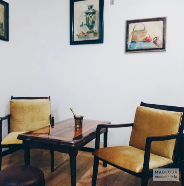 კრეატიული კაფე ცნობილია არა მხოლოდ ნახატებით, არამედ ხშირი მუსიკალური საღამოებით. სტუმართმოყვარე დიასახლისი გაგიმასპინძლდებათ საუკეთესო ქართული ტრადიციების კერძებით.