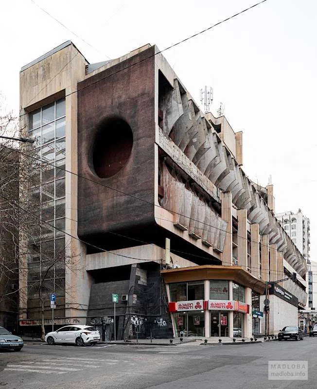 Completed in 1985, this unique building stands as a testament to the work of architect G. Bichiashvili. Known alternatively as the Technical Library, it showcases the striking Brutalist style characteristic of Soviet architecture from the former USSR.