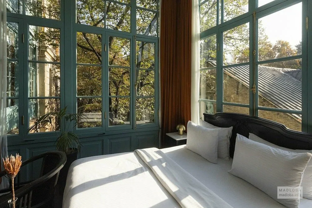 Unfound Door — Design Hotel არის ბუტიკი სასტუმრო ისტორიულ სასახლეში აღმაშენებლის გამზირზე, თბილისის შუაგულში. შენობა არ არის მხოლოდ კედლები, არამედ დროში გაყინული ეპოქის მესიჯი, სადაც ყველა სტიქია, სხივი და ფილა შეიცავს წარსულის ანაბეჭდებს.