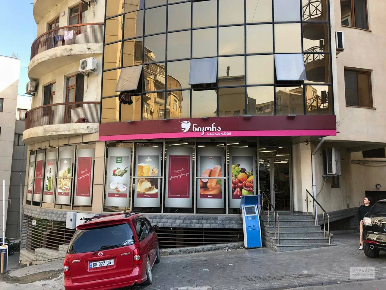 ნიკორა სუპერმარკეტი — ცომეულის, ნახევარფაბრიკატების და ახალი პროდუქტების მაღაზია ნ. რამიშვილის ქუჩაზე.
