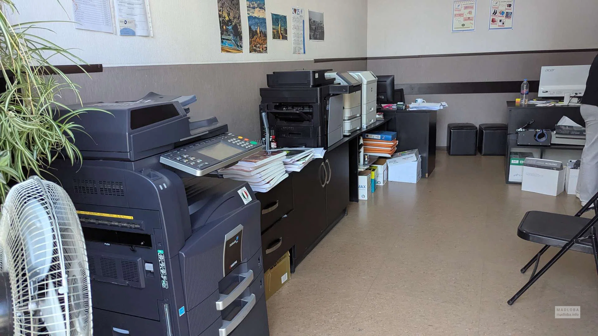 შიგნით არის პროფესიონალური გადამწერი აპარატები და პრინტერები, შეკვეთის მიღების მოწესრიგებული ადგილი და დაბეჭდილი პროდუქციის გამოშვების მრიცხველი. ფორმატი შესაფერისია მათთვის, ვინც ბეჭდავს კონტრაქტებს, ბილეთებს, ფოტოებს, მცირე ბუკლეტებს ან სურს სწრაფად დაბეჭდოს მასალები პრეზენტაციისთვის.