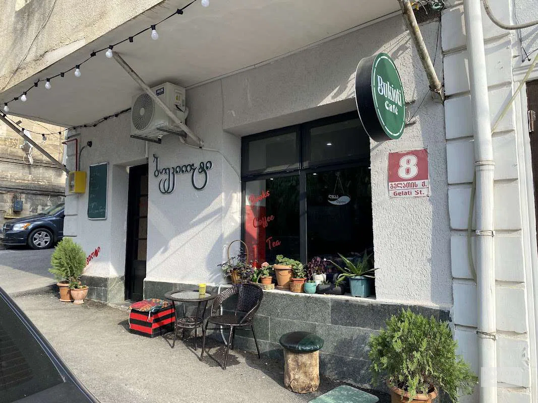 Bukioti Café — это небольшое, но атмосферное кафе в Кутаиси, расположенное на тихой улице Гелати, 8. Место создано для тех, кто ценит уют, винтажные детали, неспешные разговоры и качественный кофе.