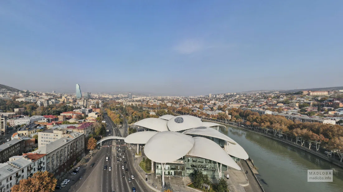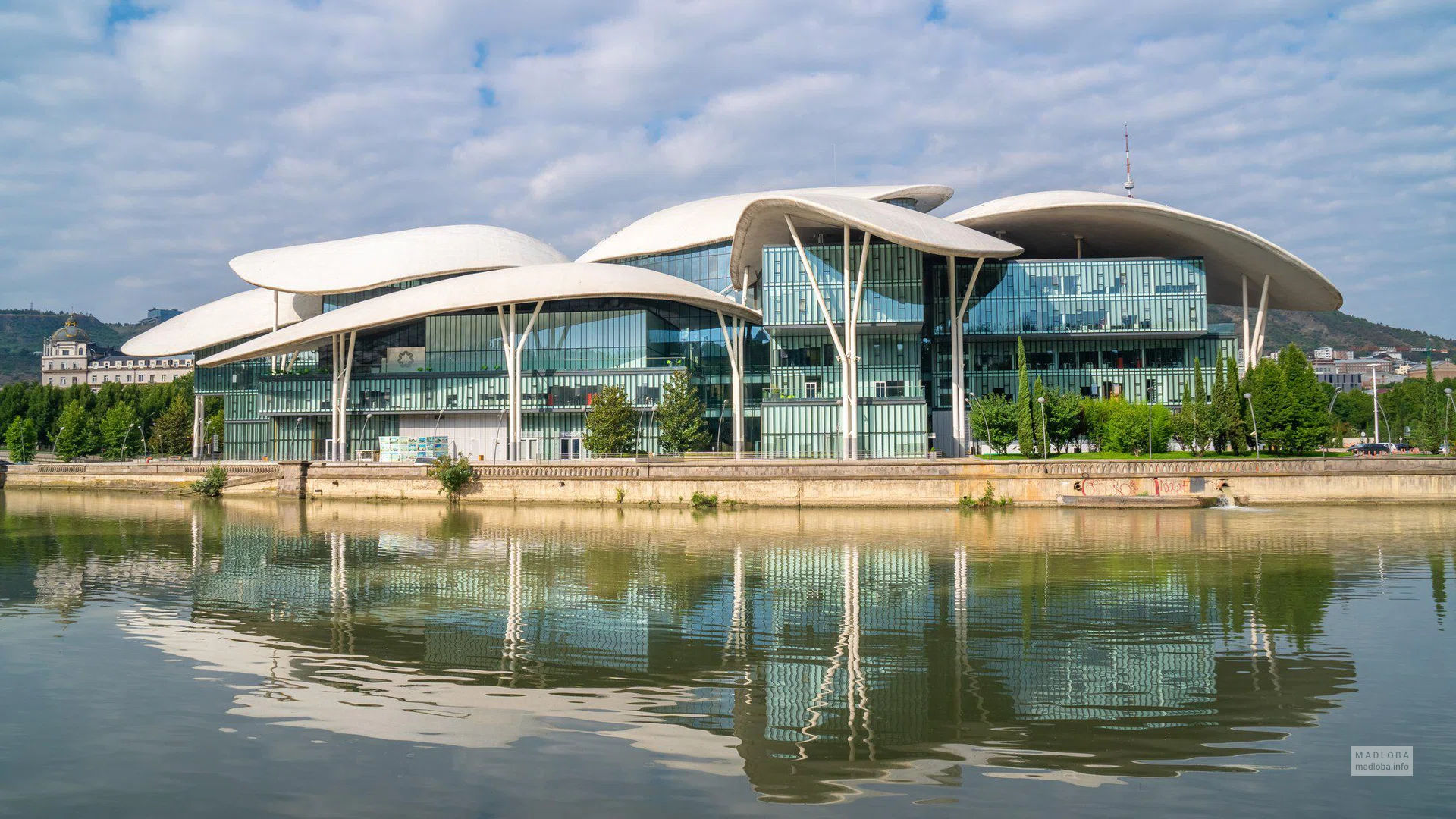 Фантастическое архитектурное творение, это здание непременно привлекает внимание. Расположено у берегов реки Кура, оно легко заметно с обеих сторон берегов, предоставляя возможность более детального изучения, особенно при экскурсии на речном трамвайчике.