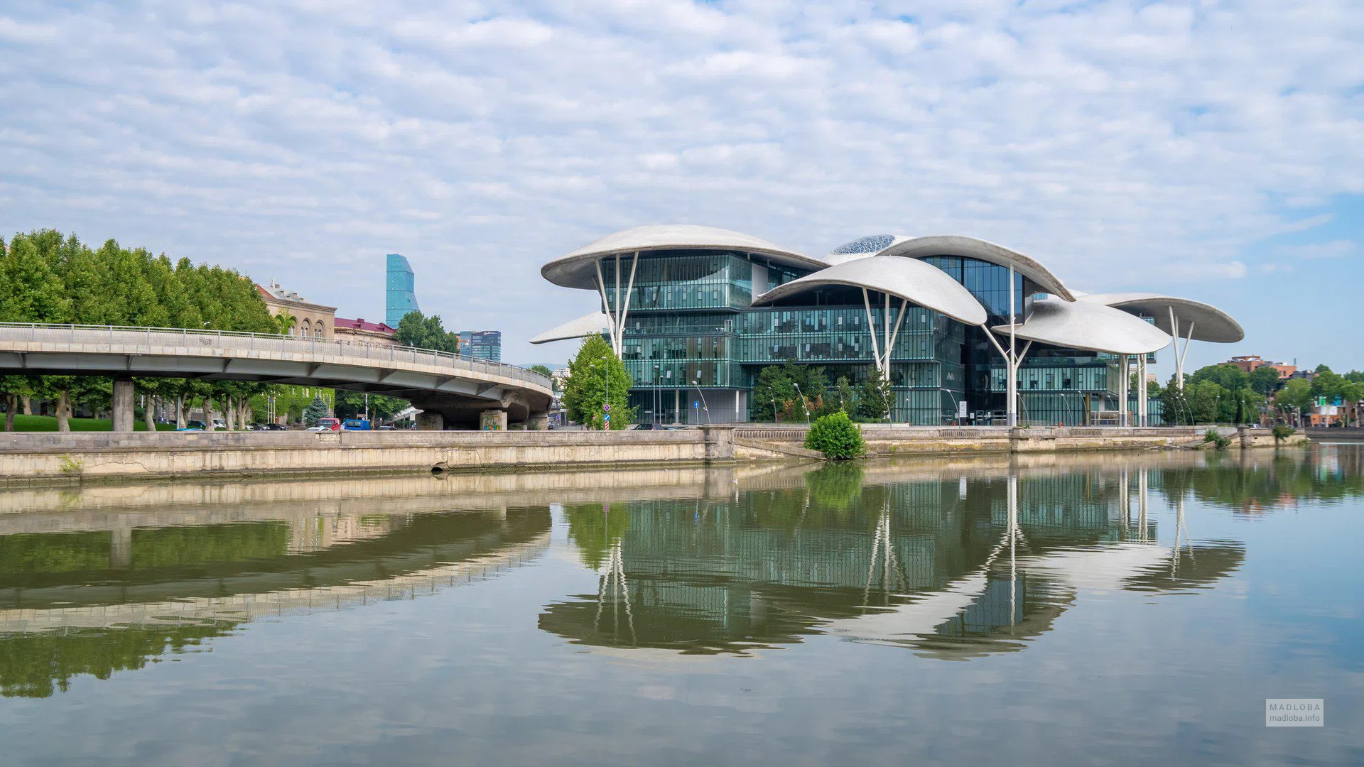 Роскошное здание с уникальными архитектурными решениями, заслуживает внимания! Находится в красивой локации на реке Кура, хорошо видно с обоих берегов. Его тоже можно рассмотреть с речного трамвайчика, во время экскурсии!
