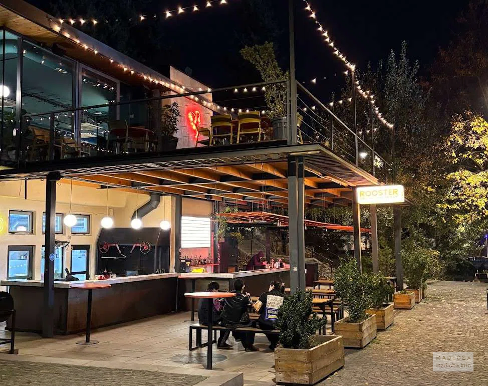 Rooster— стильный гриль-бар, уютно расположенный в самом сердце Тбилиси, в парке Деда Эна, на берегу реки Кура. Это место, где вкус жареного мяса, запах костра и вечерние огни сливаются в одно настроение — тёплый городской вечер