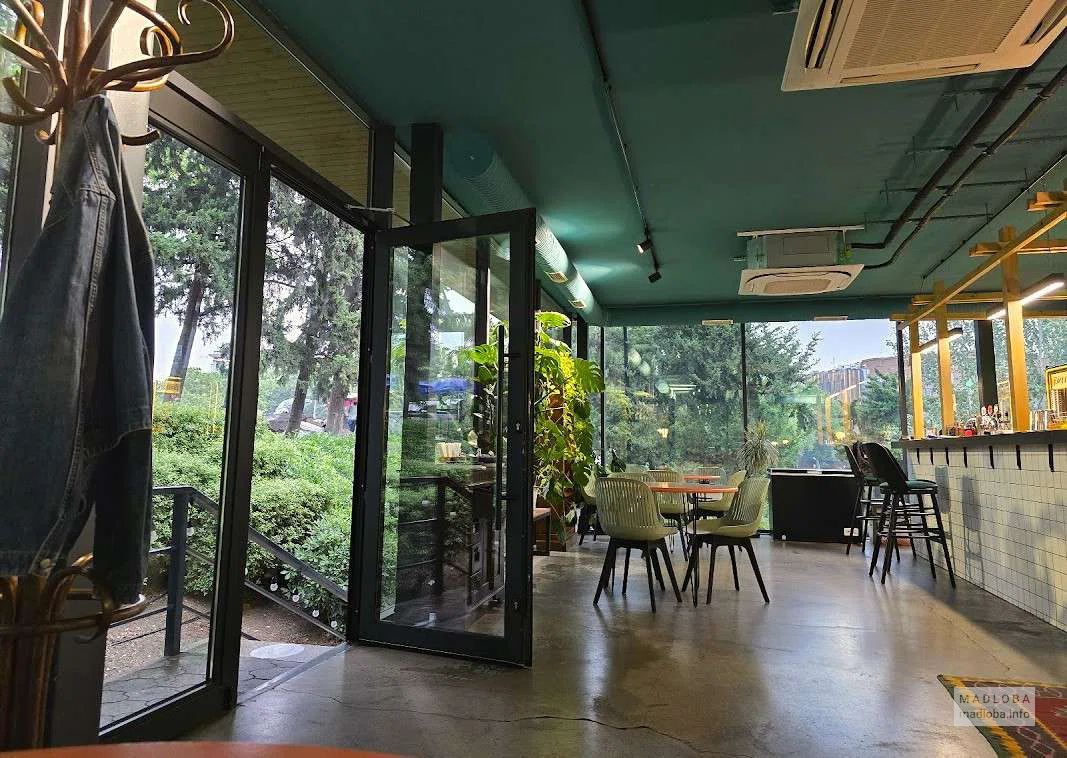 В меню — классика гриля: бургеры, ребрышки, крылышки, стейки и овощи на открытом огне. Напитки на любой вкус — от локального вина до авторских коктейлей. Интерьер сочетает в себе индустриальные элементы, деревянную мебель и зелёные акценты, а просторная терраса позволяет наслаждаться едой под открытым небом.