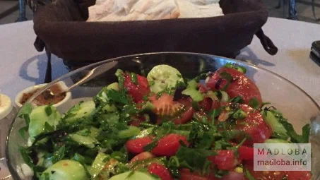 В кафе готовят вкуснейший сочный шашлык из буйволиного мяса, овощной салат с кахетинским маслом, изысканный чашушули и лопатку в аджике.