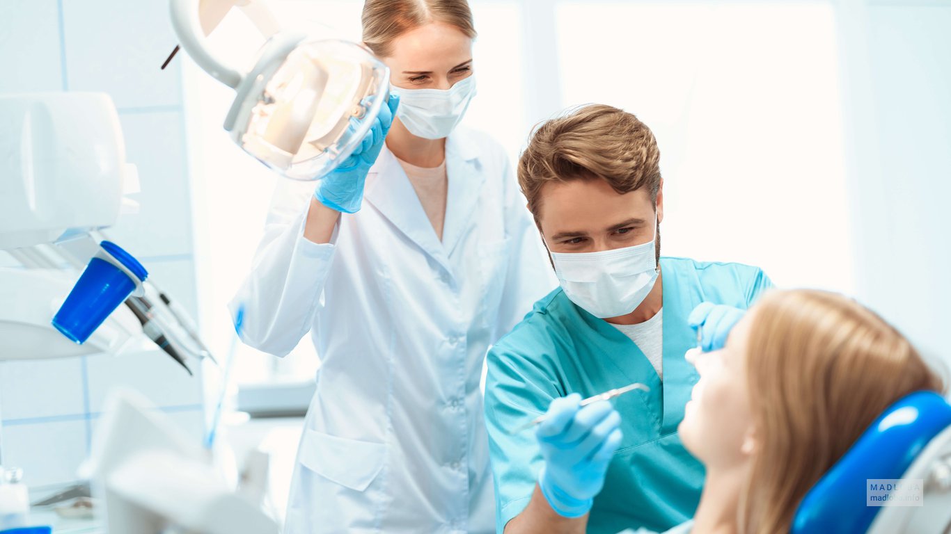 В клинике работает сплоченная команда квалифицированных специалистов, которые окажут профессиональные стоматологические услуги по протезированию, имплантации и отбеливанию зубов новейшими материалами, работает ортодонт и челюстно-лицевой хирург.