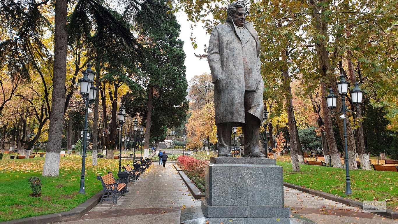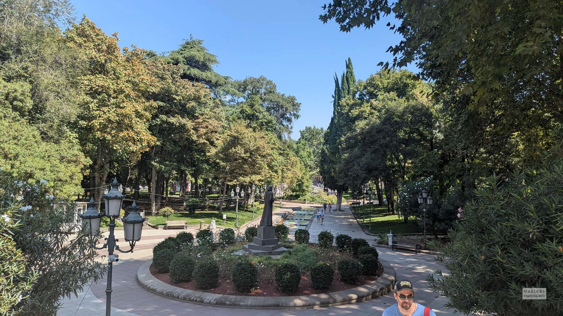 Сад удивляет своей плотной зеленью, создавая идеальную атмосферу для отдыха и релаксации. В его сердце стоит памятник Ладо Гудиашвили, напоминая о культурном наследии региона.