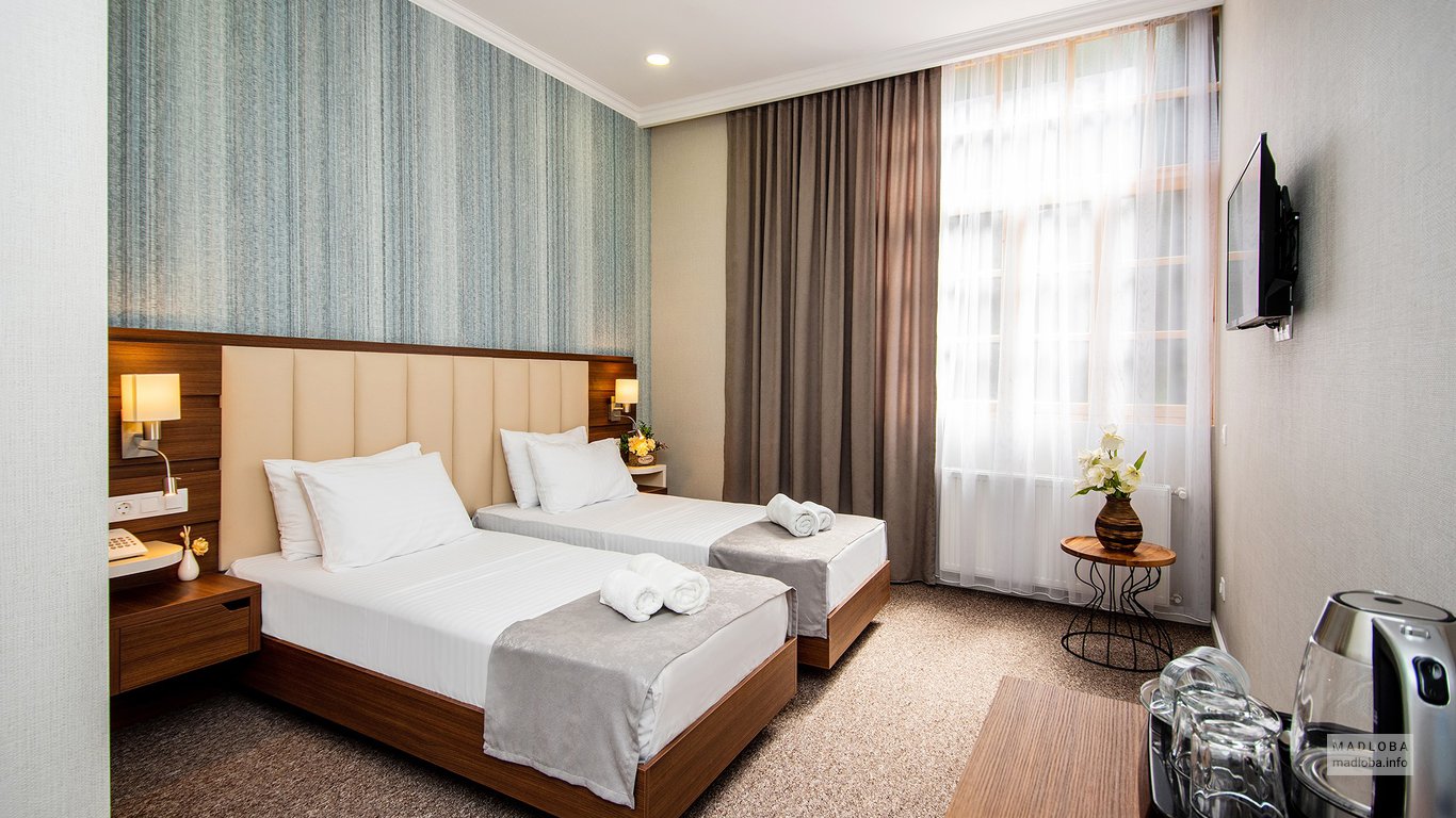 Отель расположен в центре города, рядом с метро и автобусной остановкой. Вокруг много продуктовых магазинов, а один из них находится почти у самого отеля. Через дорогу - красивый парк с фонтанами и детской площадкой. Персонал здесь очень внимательный и следит за чистотой. Особенно хочется отметить горничную Диану Аибову, которая всегда внимательно относилась к нашим просьбам и выполняла их с большой аккуратностью. Завтрак свежий и домашний, повара Джульетта и Рая всегда старались нас порадовать. Официанты приветливые и приятные. Высокие потолки в номерах создают ощущение простора, а герметичные окна и кондиционер обеспечивают комфортный отдых. Персонал на ресепшене готов помочь с любыми вопросами и говорит на русском и английском, что было очень удобно. Рекомендую этот отель тем, кто ценит грузинскую кухню и теплое отношение.