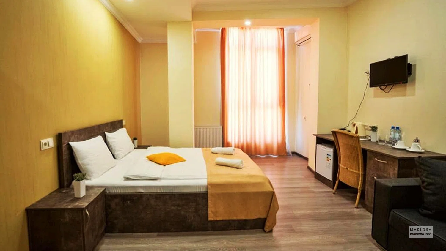 Пятизвездочный отель Набади предлагает гостям Тбилиси остановиться в комфортных хорошо обставленных номерах, в каждом из которых будет wi-fi, телевизор со спутниковыми каналами, собственная ванная комната, кондиционер, холодильник, фен.