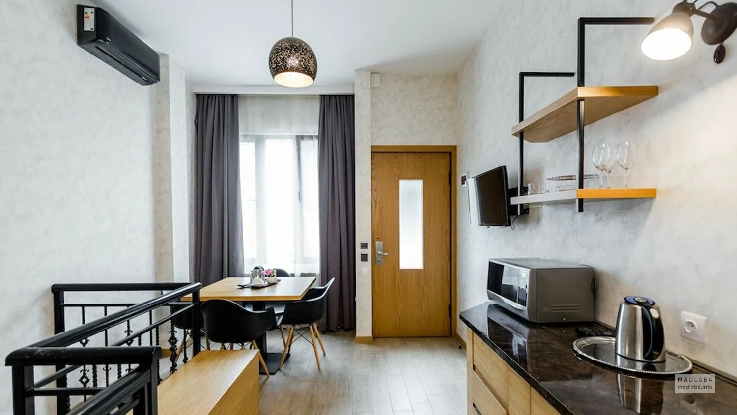 В комнатах установлены кондиционеры, просторные окна с выходом на террасу. Здесь вы можете посидеть на свежем воздухе и выпить бокал вина из небольшой коллекции в мини баре. На столике всегда есть телефон.