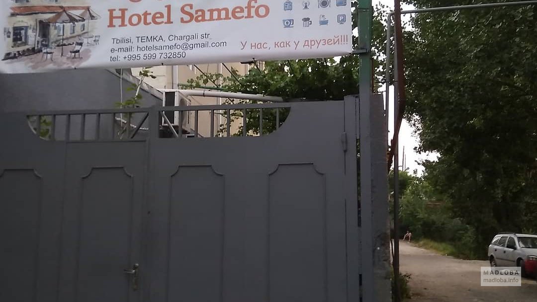 Отель “Samefo” расположен в тихом районе, в стороне от шумного центра. рядом есть автобусная остановка и станция метро Гурамишвили. Если хотите прогуляться и отдохнуть - пройдитесь по старым улочкам до театра драмы. В другую сторону находится тбилисское море.
