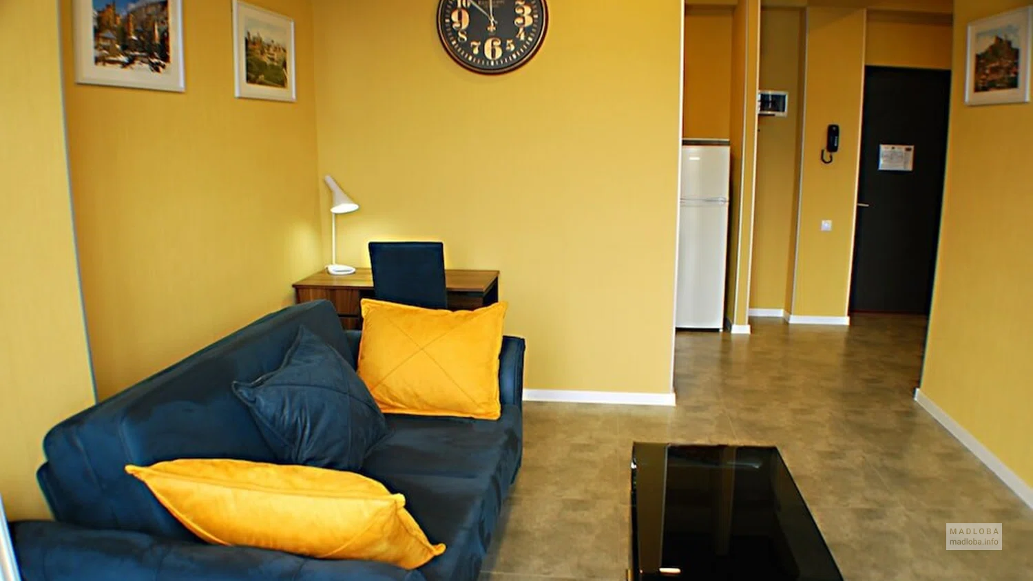 На столике в углу найдется чайник и чашки на подносе. По желанию вам на столике в номере сервируют завтрак.
