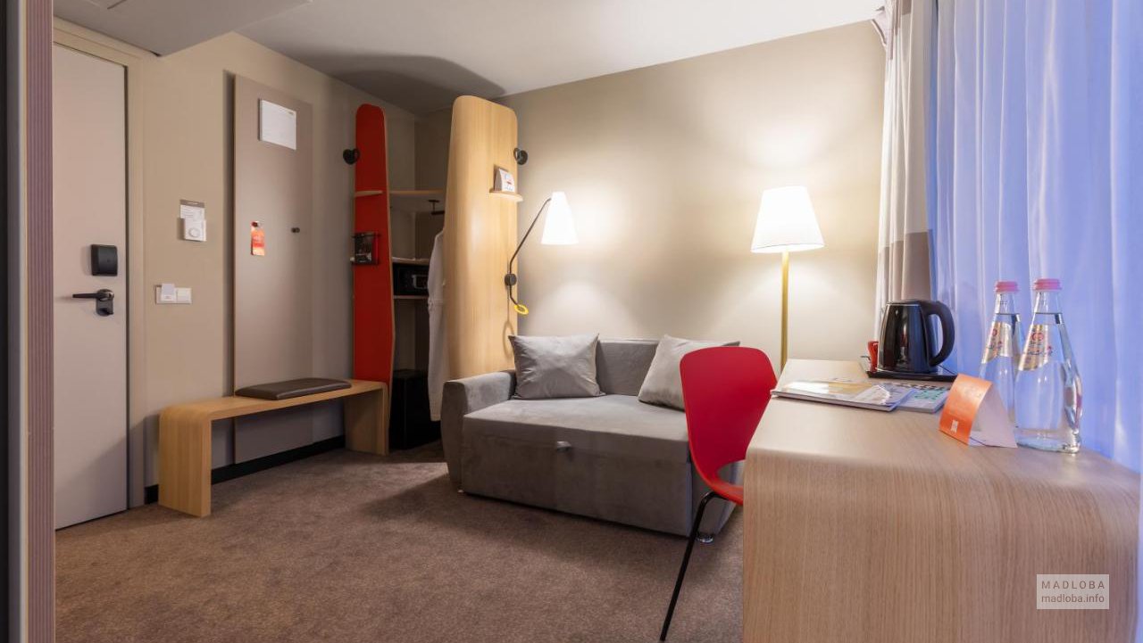 Отель Ibis Tbilisi Stadium в Тбилиси. подходит также для романтического отдыха. Есть люкс для новобрачных. Интересный интерьер.
