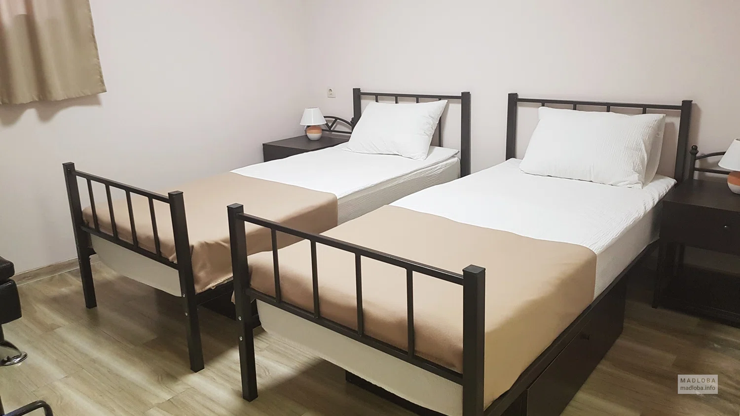 В комнатах установлен кондиционер, можно посмотреть телевизор обязательно есть чайник и утюг. Есть собственная ванная комната, в которой установлен душ и укомплектован туалетными принадлежностями.