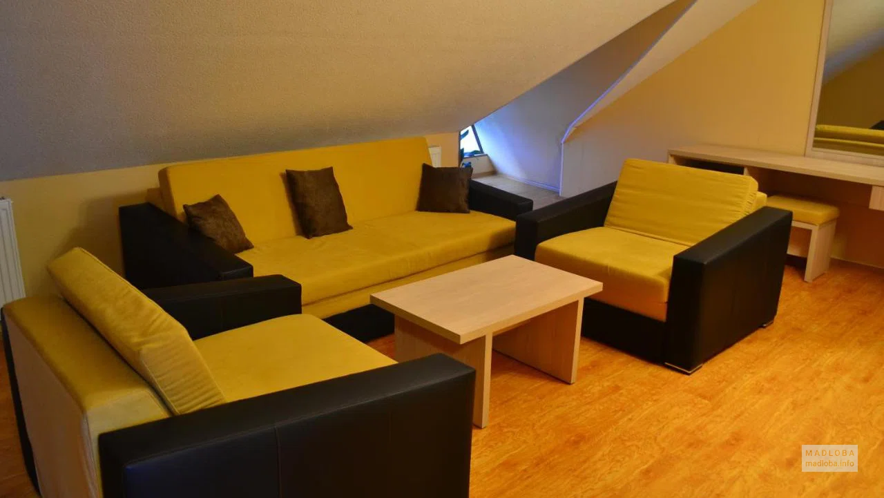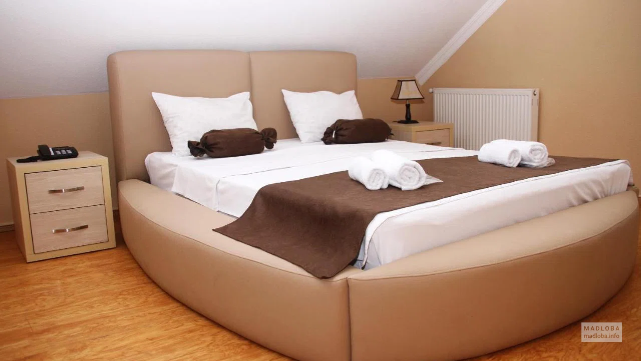 В каждом номере кондиционер, холодильник, телевизор, балкон с видом на фруктовый сад. В ванной комнате все туалетно-косметические принадлежности. Чистое постельное белье и полотенца. Уборка номеров ежедневная. Есть камин.