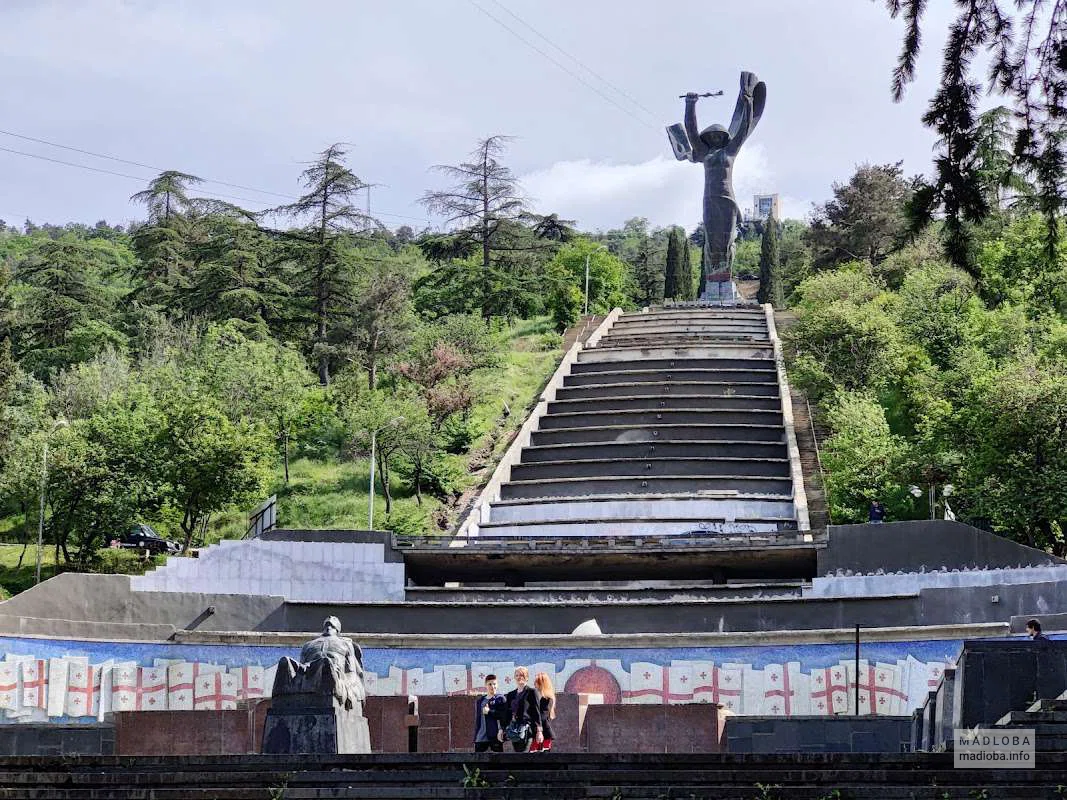 Скульптура "Победа, мать благодарящая" была установлена в 1981 году. Она возвышается на вершине Большого каскада фонтанов, который начали строить в 70-х. В 1975 году там также появилась Могила неизвестного солдата. В настоящее время каскад находится на ремонте. Над проектом работали архитекторы Владимир Алекси-Месхишвили и Киазо Нахуцришвили, художник Зураб Церетели и скульптор Георгий Очиаури. Частично разрушенный скульптурный ансамбль "Реквием", посвящённый грузинским воинам, павшим за Родину, в 2009 году был перемещён ближе к горийской крепости, где постепенно демонтируется.