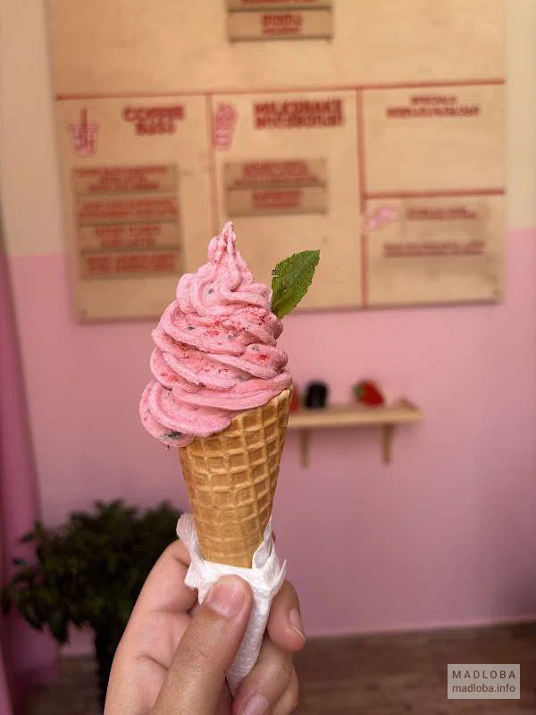 В меню — real fruit ice cream на основе банана, манго, вишни, юдзу, кокоса и других фруктов. Также можно заказать классические десерты, мороженое-сэндвичи и необычные сочетания вроде тахини-халва или фисташка с орео.