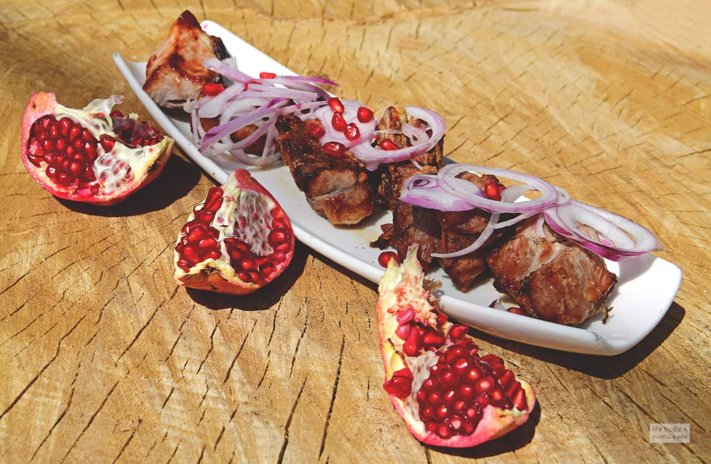 В меню ресторана подают прекрасный шашлык из разного мяса, а также пикантные ребрышки в соусе.