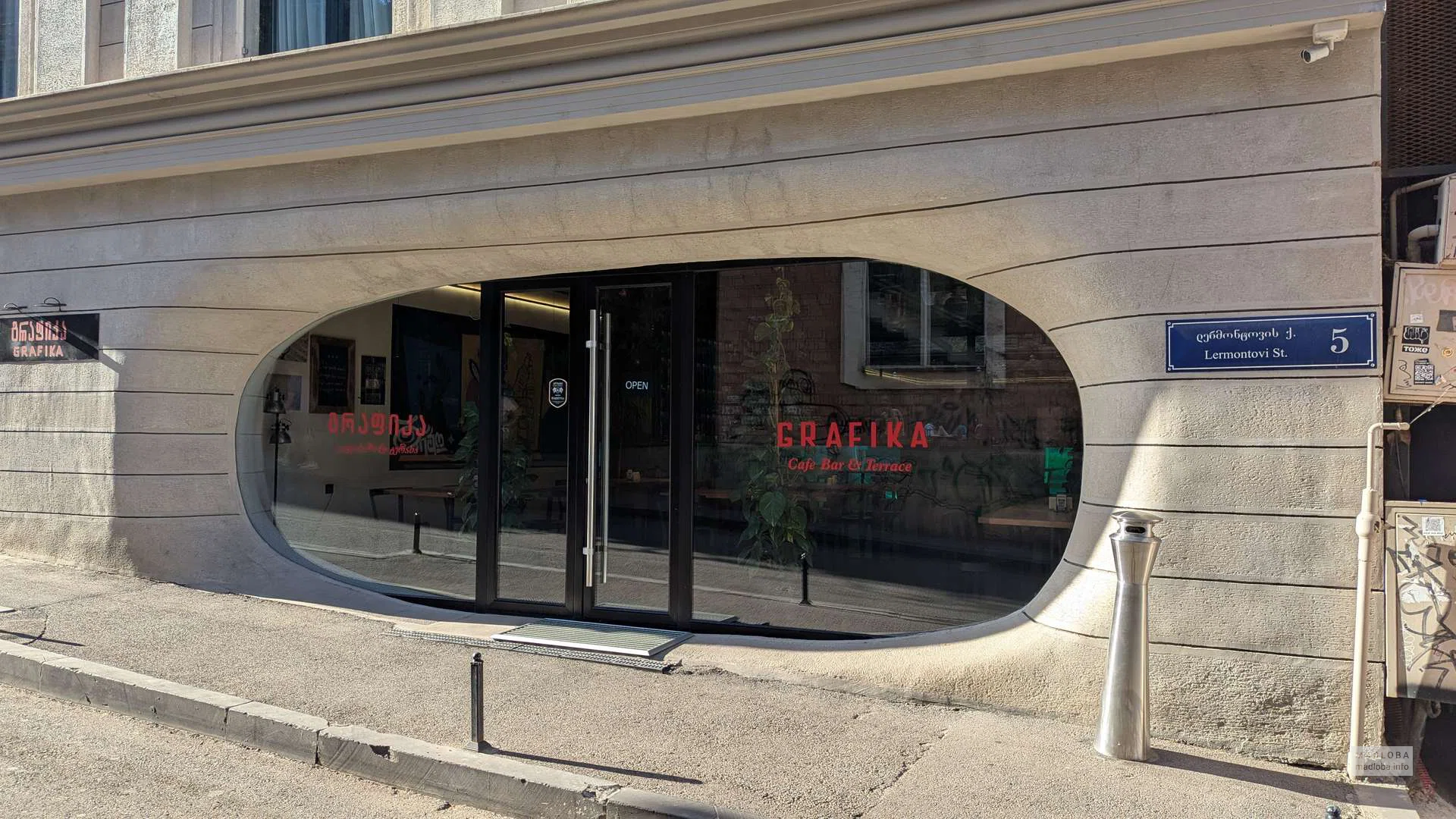 Пишу положительный отзыв, потому что не устаю возвращаться сюда при каждой моей поездки в Тбилиси. Как красиво в Grafika! И внутри, и снаружи. Находится на старой красивой улице. Сразу у входа чувствуется какая-то особая атмосфера. Отличные дизайнерские решения внутри заведения. Конечно же, вкусная еда и коктейли.
