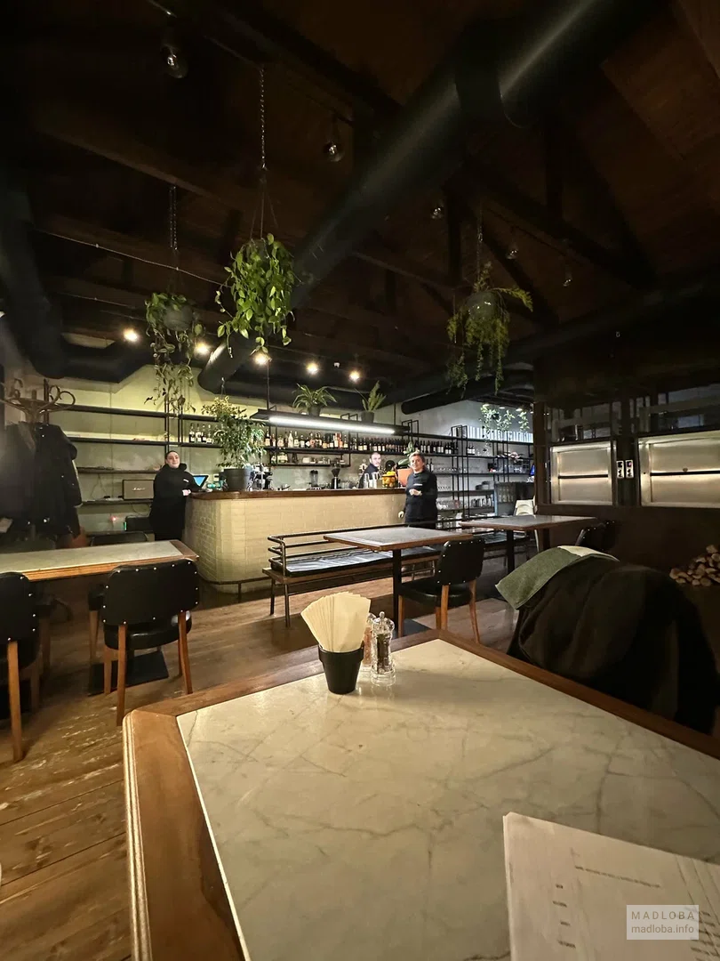 Интерьер выполнен в тёплых тонах: дерево, растения, мягкий свет. Идеально подходит для ужина с друзьями, семейного праздника или спокойного вечера вдали от суеты центра.