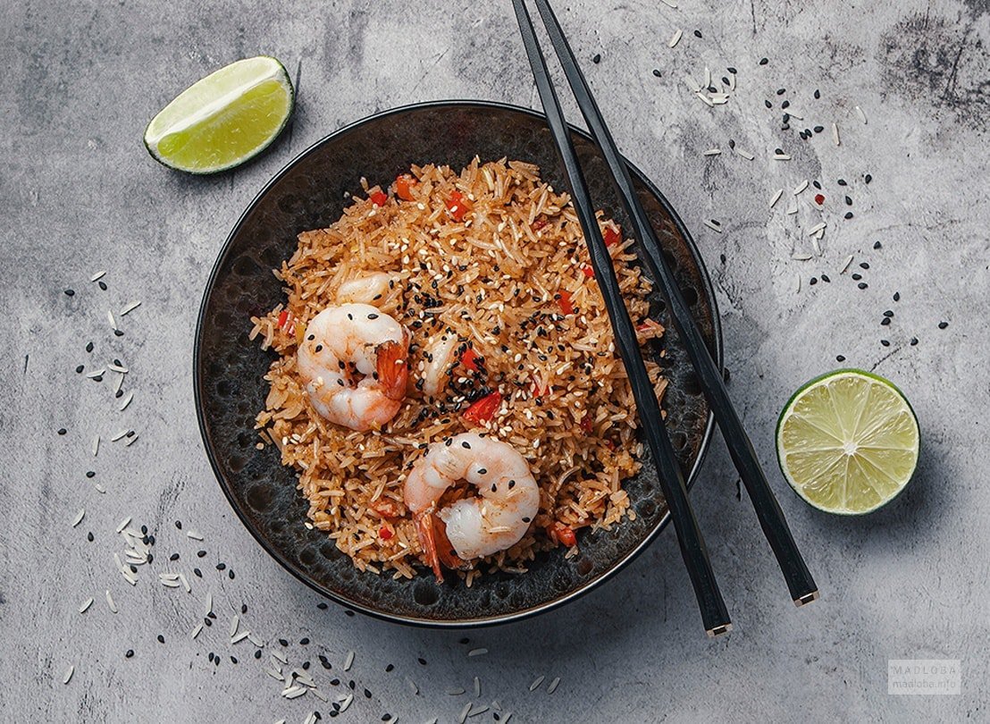 Атмосфера уюта и доброжелательности. Рис с курицей и рис с креветками просто бомба, очень вкусные. Настроение супер, все очень понравилось. Спасибо!