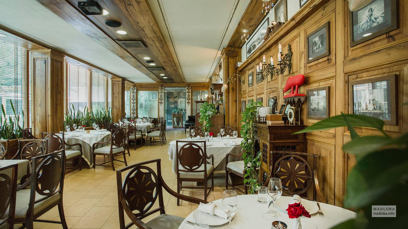 Ресторан расположился в бутике-отеле «Vinotel», в нем антикварная и уютная мебель, изысканный интерьер и авторские картины, фото старого Тбилиси.
