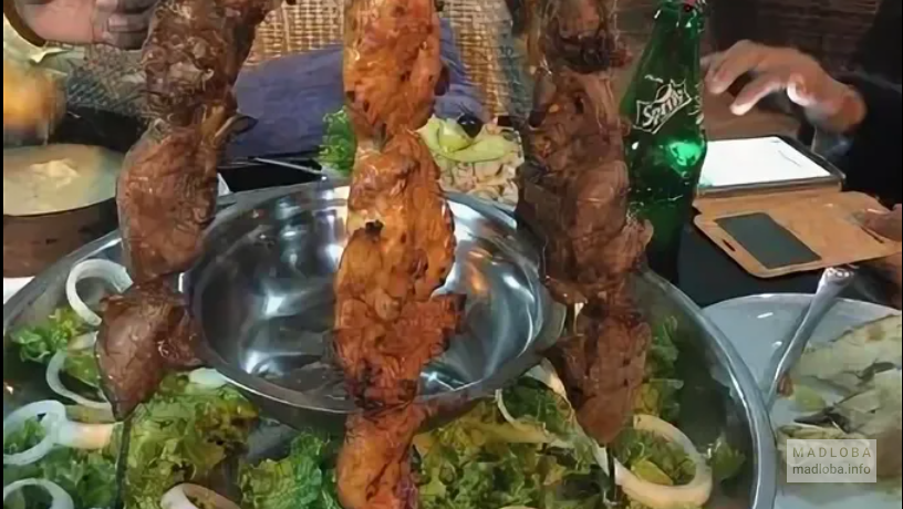 Заведение скорее московское, чем грузинское. И по размерам блюд и по ценнику; по подаче блюд тоже: если написано «шашлык», то и будет вам «шашлык». Зелени никто не обещал.