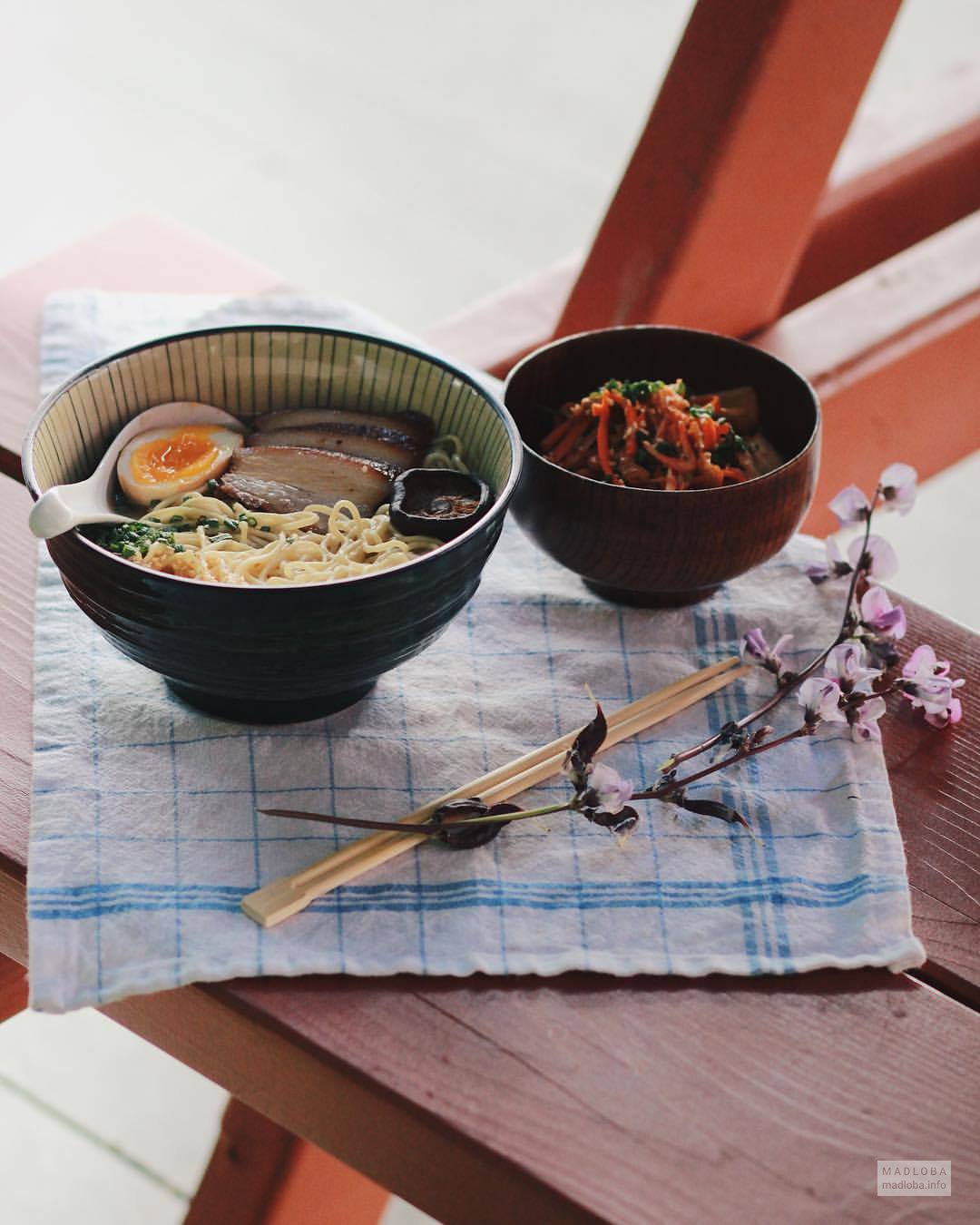 В пасмурный дождливый день в Тбилиси захотелось горячей лапши. Нашёл ресторан поблизости, который специализируется именно на японской лапше, а не на "азиатской кухне" в целом. Учитывая, что Тбилиси далековато от Японии, ожидания были невысокими. Но их меню, полностью состоящее из японских блюд, выглядело многообещающе. Обычно я предпочитаю тонкотсу рамен, но его не оказалось в наличии, поэтому заказал сёю. Бульон был насыщенным, яйцо с жидким желтком, а чяшу — нежным и сочным. Хотя использовали волнистую лапшу, мне больше нравится прямая, её твёрдость оказалась в самый раз. Взял ещё куриный карааге, он был приятно хрустящим. В общем, это была достойная порция сёю рамена. Единственное, что стоит учесть — ресторан находится во дворе Фабрики, и даже там его найти непросто. В следующий раз ориентируйтесь на ресторан под гигантским зеркальным шаром.