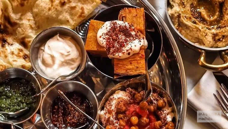 Мезе-плато поражает своим великолепием: нежнейший шашлык, считающийся одним из самых вкусных, блистает рядом с превосходным хумусом и великолепной закуской из баклажанов. Прекрасный фарш со сметаной добавляет неповторимый вкусовой акцент. Все остальные компоненты этой тарелки также впечатляют и радуют гурмана, выделяясь особенно понравившимися вкусами.