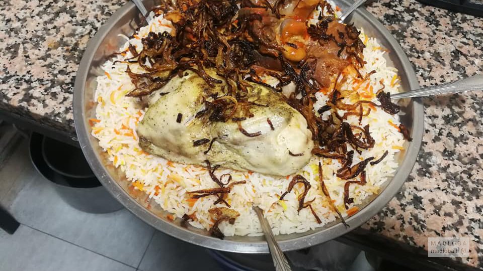 Это был первый раз, когда мне удалось попробовать йеменскую еду. Хочу сказать, что она мне очень понравилась! Порция щедрая, курица хорошо прожаренная и сочная, мясо почти отваливается от костей. Не нужны вычурные столовые приборы и громкая музыка. В центре внимания еда.