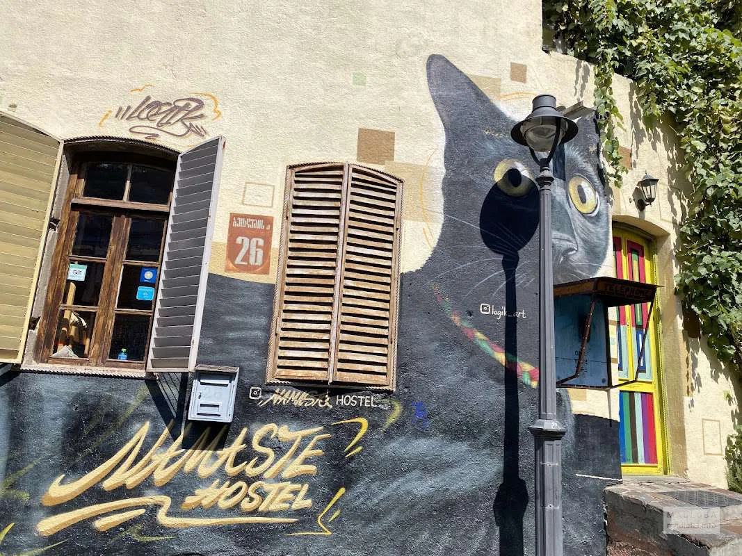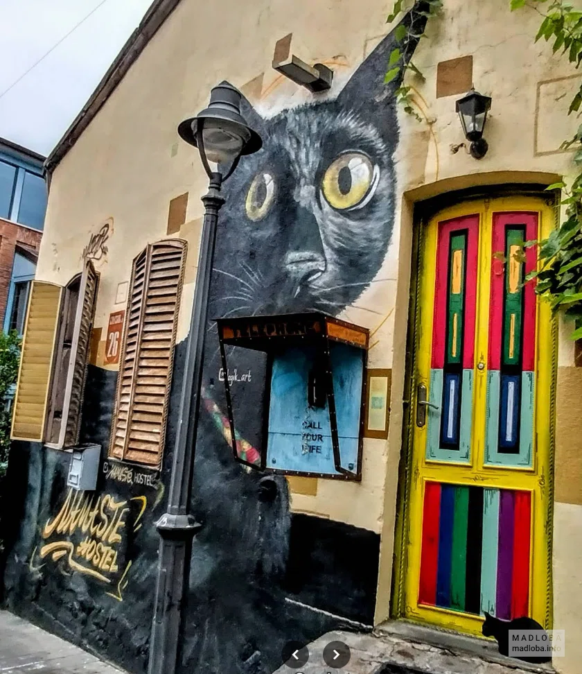 Shiva the Cat— это один из самых известных муралов Тбилиси, расположенный в районе Старого города, по адресу ул. Бетлеми, 26. Яркое изображение чёрного кота с жёлтыми глазами украшает фасад здания хостела Namaste и стало настоящим магнитом для туристов и фотографов.