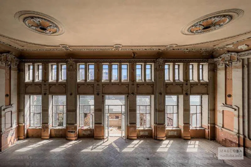 В самом сердце Чугурети, среди исторических фасадов и старинных домов, скрыто здание бывшего Тифлисского реального училища. Оно пережило эпохи, войны и смену власти — но на втором этаже до сих пор стоит бальный зал, полный эха ушедших мелодий.