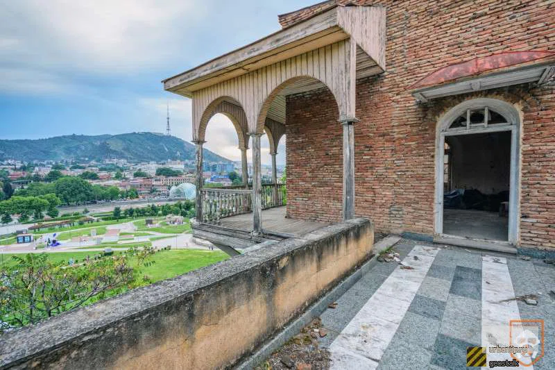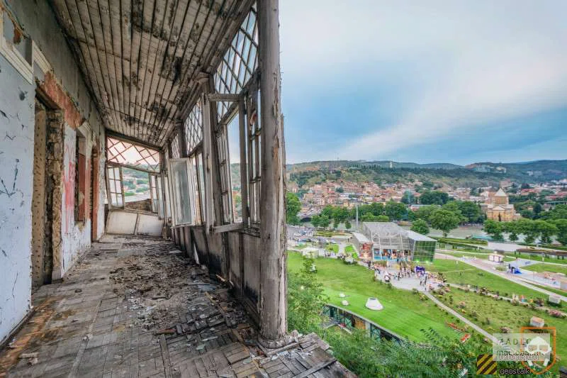 Балконы верхних этажей выходят прямо на парк Рике и гору Мтацминда. Архитектура сохранила элементы прошлых эпох: кованые перила, арочные окна и фасад, покрытый временем. Когда-то это место было точкой притяжения, сегодня — объект для урбанистов, исследователей и фотографов.