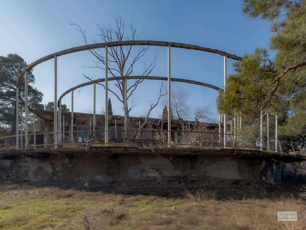 Как найти: здание расположено на берегу Тбилисского моря. К нему ведёт тропа вдоль воды, открывающая панораму на развалины ресторана — здание видно издалека благодаря своей выразительной геометрии.