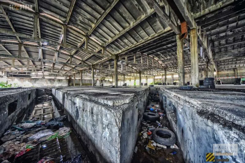Как найти: точное местоположение не указано, но объект заметен по габаритам и характерной архитектуре — бетонные колонны, разъезды и разрушенные ворота выдают его прошлое.