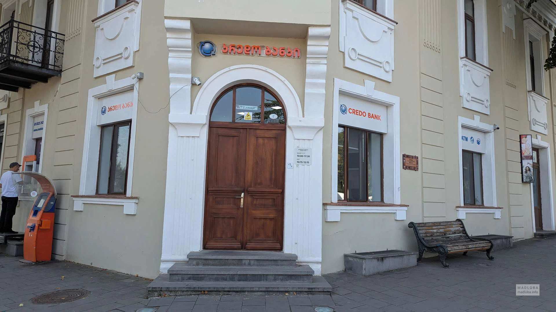 Кредо Банк — банковское отделение, расположенное на площади Ираклия II в Телави. Удобный вход, наружный банкомат и окно кассы делают это место простым и практичным для быстрых операций: снятие наличных, оплата услуг, консультации по банковским продуктам.
