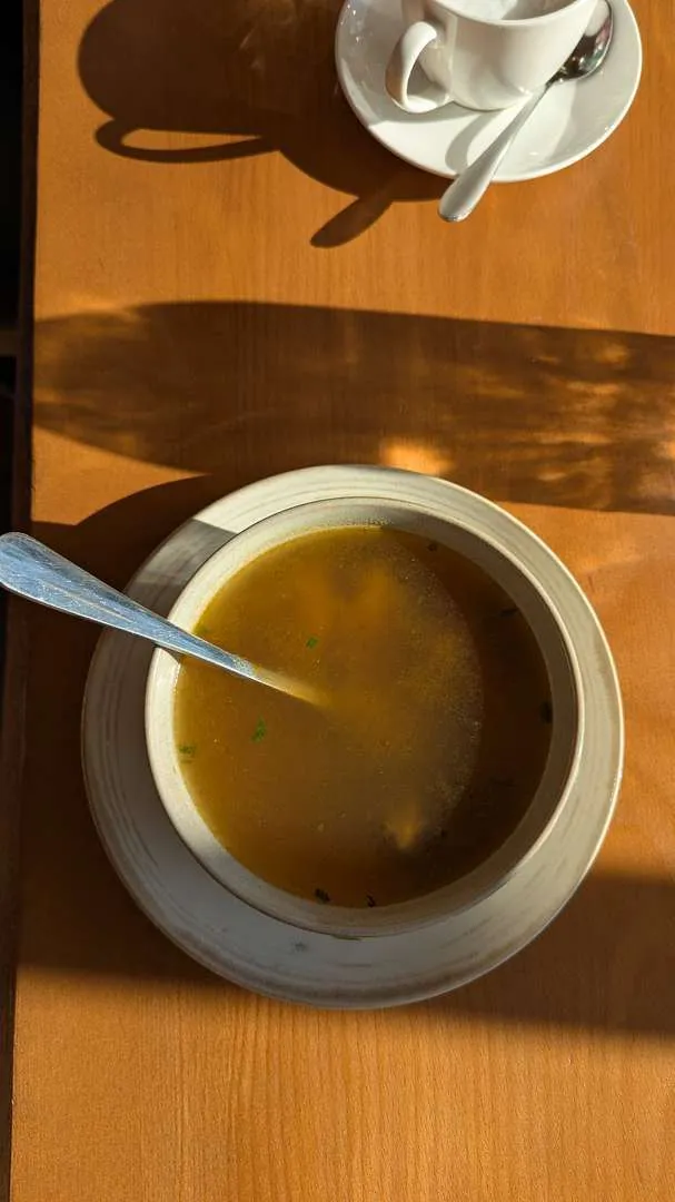 Куриный суп заказала моя знакомая. Нам заверили, что он не острый, но на деле оказалось наоборот.